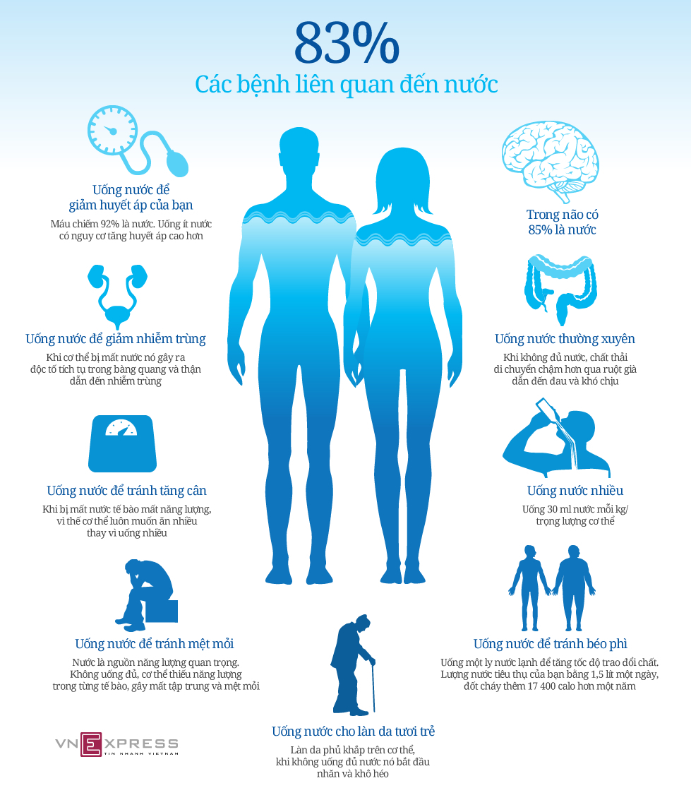 Khoa học đã chứng minh nước chiếm 70% khối lượng cơ thể nhưng không nhiều người quan tâm đến việc bổ sung đủ lượng nước mà cơ thể cần mỗi ngày.