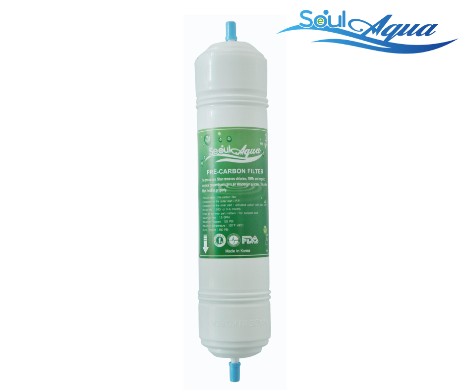 Lõi lọc nước Pre-Carbon hoạt động theo phương thức thẩm thấu của than hoạt tính giúp thẩm thấu và loại bỏ mùi và các chất hóa học hữu cơ như các thành phần clo (trohalomethane) phát sinh trong quá trình lấy nước máy. Sau đó tiếp tục loại bỏ các thành phần thước sâu hoặc chất giặt tẩy bị tan vào trong nước máy để tạo ra nước gần với tự nhiên nhất.